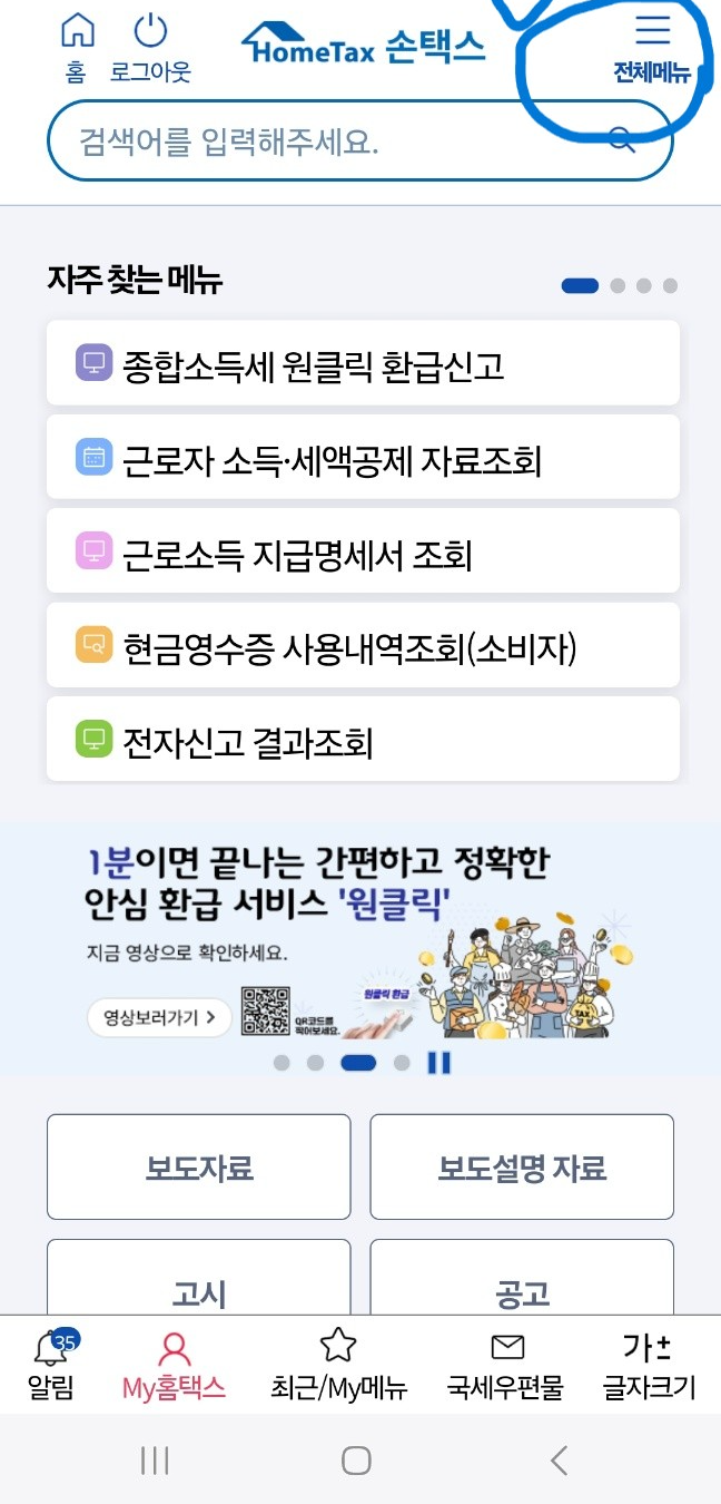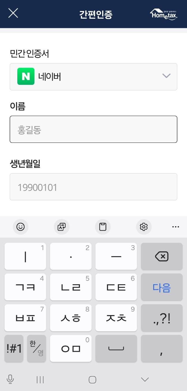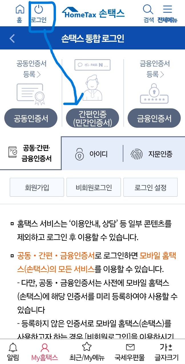 앱 실행 후, 기존 홈택스 계정으로 로그인하거나, 계정이 없으시면 회원가입을 진행합니다.2