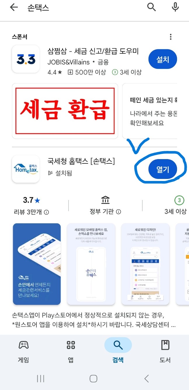 - Google Play 스토어를 열고 검색창에 '손택스' 또는 '국세청 홈택스'를 입력합니다.