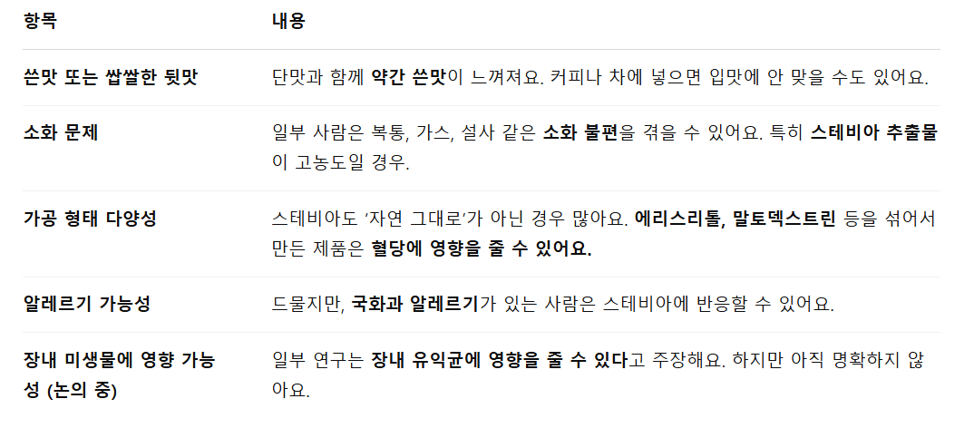 2) 스테비아의 단점