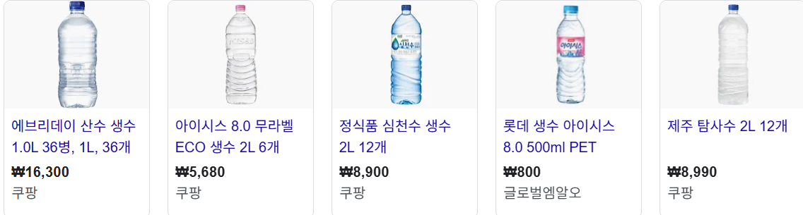 2. 생수병 물 (병에 든 미네랄워터, 먹는샘물 등)